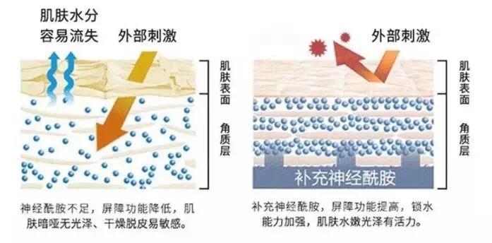 含神經(jīng)酞胺的活膚精華化妝品,能加強皮膚抗老化功能,令肌膚保持彈性,光滑細致,減少面部皺紋等形成。