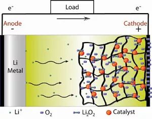 鋰空氣電池,也稱為鋰-O2,有望使用質輕的方法改變本世紀的能源存儲方式。他們有很大的潛力,比目前為手機和平板電腦供電的鋰離子電池的能量高五倍。它甚至可能成為可充電電池,高達1000瓦時/公斤,所需要的僅是氧氣。這種電池可以用于燃料電動汽車和儲存太陽能板和風力渦輪機產生的電能。