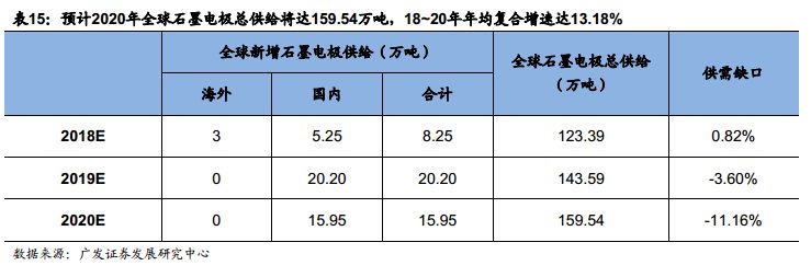 四、供需平衡:預(yù)計(jì)2018年全球石墨電極供需基本平衡,2019、2020年石墨電極或供大于求