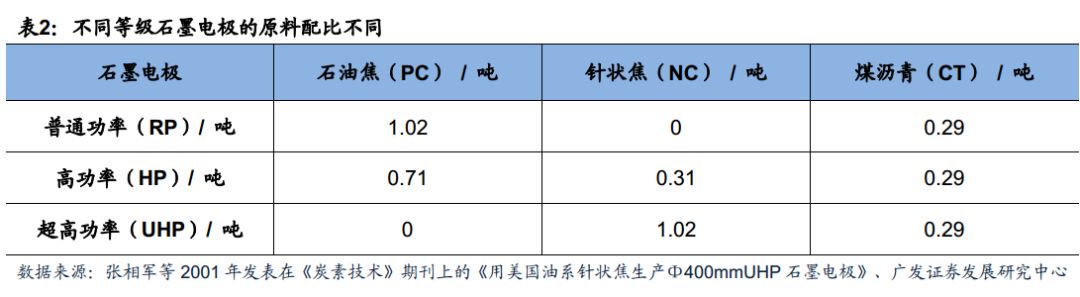 (1)原料:低硫石油焦、煤系針狀焦為骨材,煤瀝青為粘結(jié)劑
