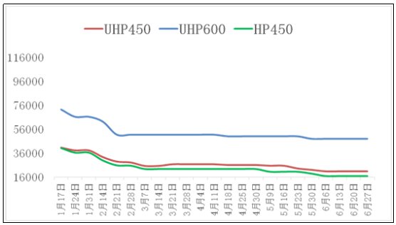 2019年1-6月中國石墨電極代表規格價格走勢圖