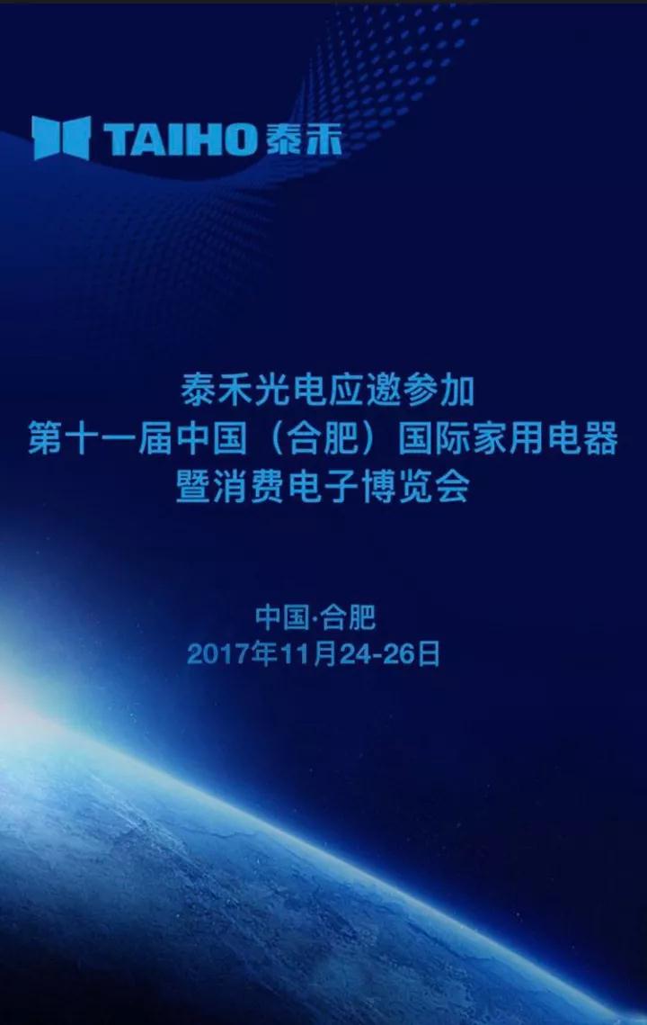 第十一屆中國(合肥)國際家用電器暨消費電子博覽會于今日(11月24日)在合肥濱湖會展中心開幕。合肥泰禾光電科技股份有限公司應邀參展,展位號:8號館A9,歡迎蒞臨!