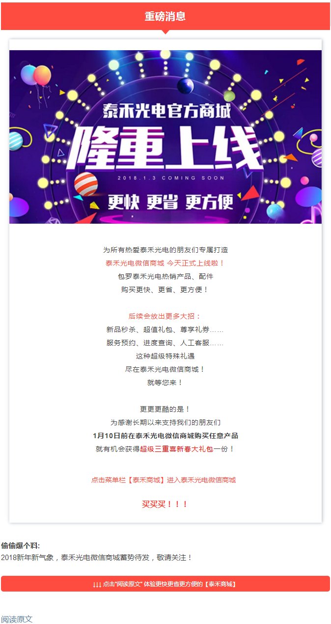 泰禾光電微信商城隆重上線,壕禮等你來!