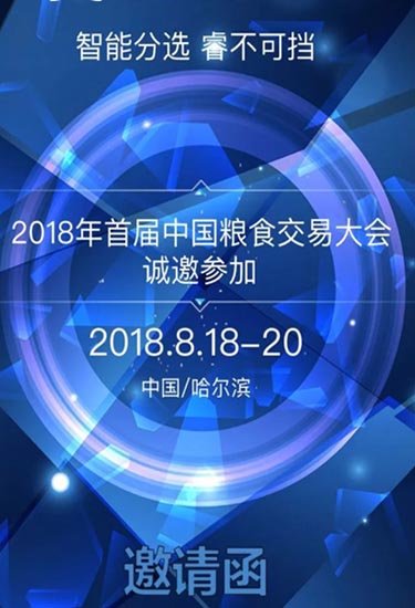 由國家糧食和物資儲備局主辦的2018首屆中國糧食交易大會將于2018年8月18-20日在哈爾濱國際會展中心舉行,本屆大會主題為:新時代、新理念、新平臺、新業態---推動產銷合作新平臺建設,助力糧食產業高質量發展。合肥泰禾光電科技股份有限公司攜智睿系列大米色選機重磅亮相展會。