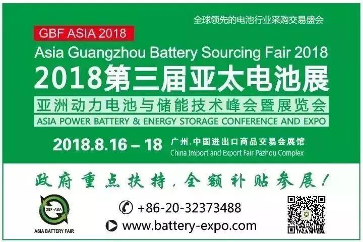2018第三屆亞太電池展規模增至3個展館、45000平米、500余企業、35000余觀眾!國內企業參展,補貼后展費最低3860元/個。