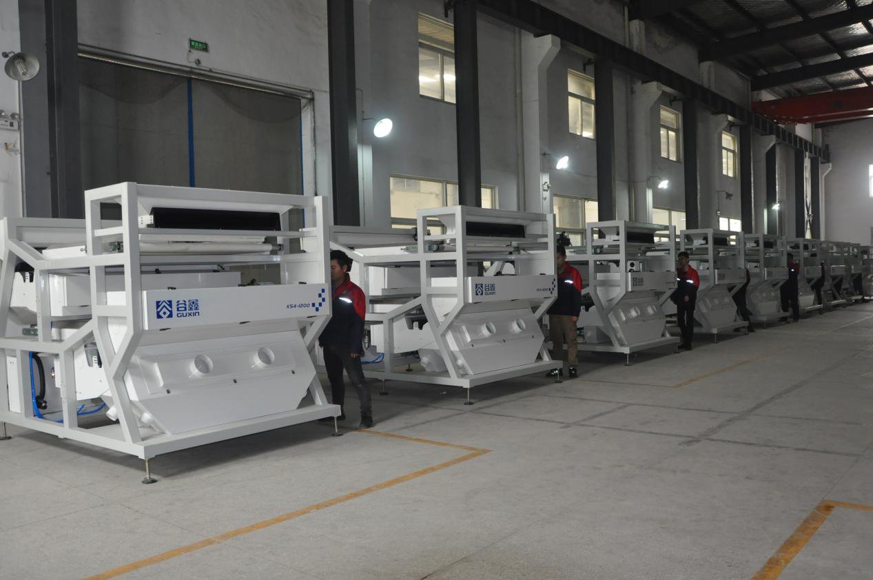整裝待發的“谷鑫”牌礦石色選機生產車間2