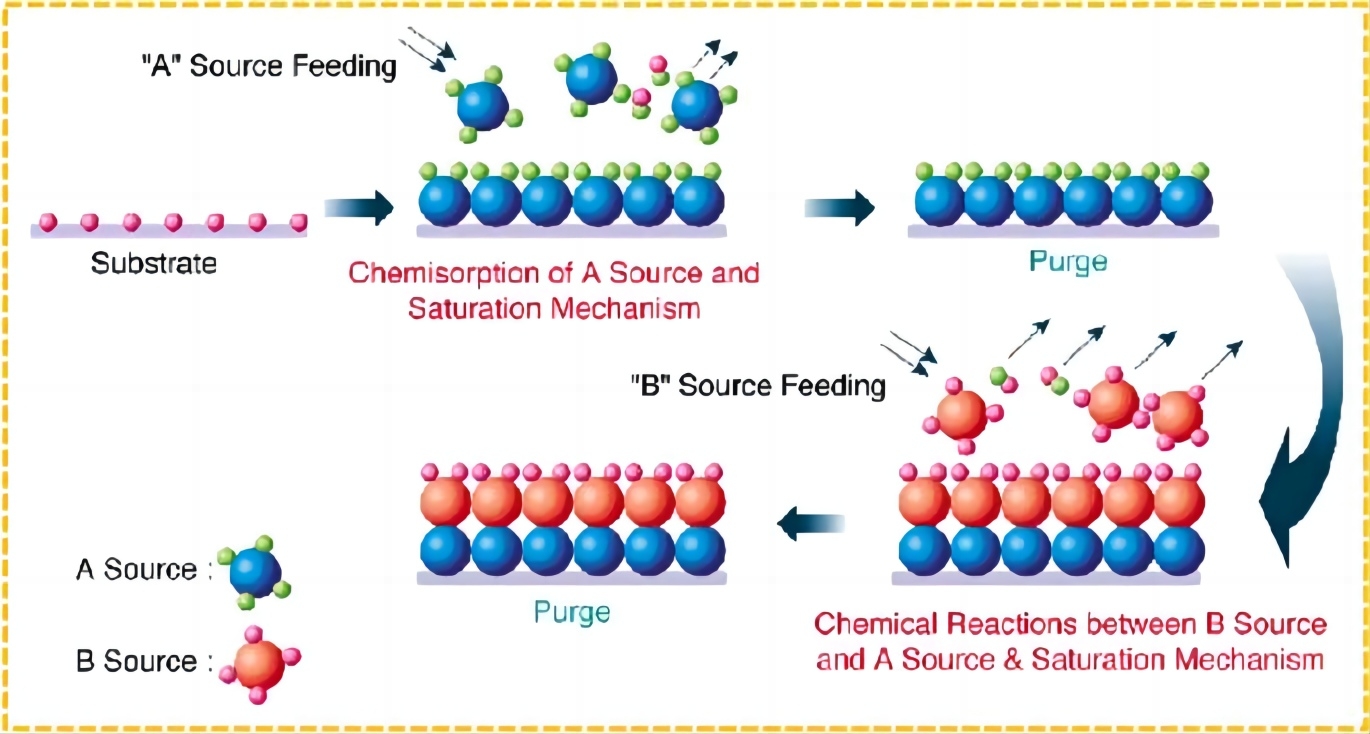 原子層沉積 (ALD) 技術通過將氣相前驅體連續引入表面來制造薄膜。前驅體分子在每個交替脈沖中以自限方式與表面反應,一旦基材上的所有反應位點都被利用,反應就會停止。前驅體與表面接觸的類型決定 ALD 循環是否完成。根據應用的不同,ALD 循環可以重復多次,以增加薄膜的層數。