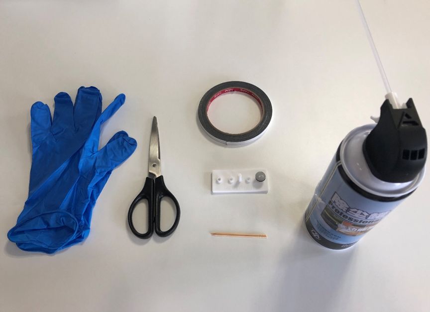 準(zhǔn)備工作 : 手套、剪刀、導(dǎo)電膠、樣品臺、樣品臺基座、牙簽、吹掃氣罐