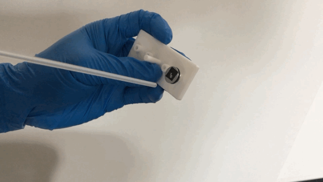 第五步 豎直持握壓縮氣罐,吹掃樣品;調(diào)整方向,繼續(xù)吹掃