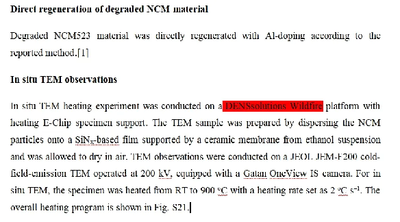 優秀論文賞析原位樣品桿 | 《Energy Storage Materials》對退化NCM 正極材料直接再生機制的多尺度觀察