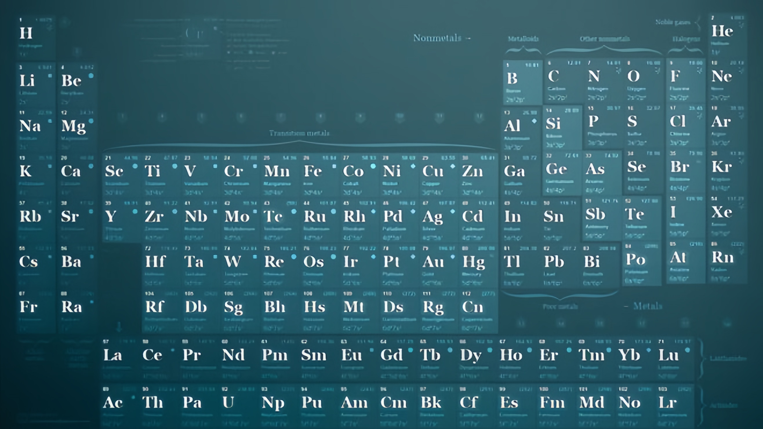 在元素周期表中原子序數決定了原子核所帶正電荷數。原子核極小,它的直徑在10-15 m~10-14 m之間,體積只占原子體積的幾千億分之一,在這極小的原子核里卻集中了 99.96 % 以上原子的質量,原子核的密度極大,核密度約為 1017 kg/m3。