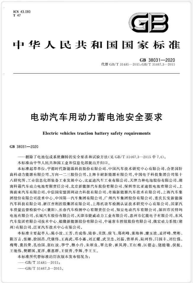 電動車較核心也是較危險的部件是電池,針對電池的安全要求,在 2015 年就推出了針對電動汽車的國家標準《電動汽車用動力蓄電池安全要求》,該標準在 2020 年又重新修訂。參與標準制定和修改的企業包括了寧德時代、國軒高科、天津力神等鋰電池大廠,也包括比亞迪、北汽、上汽、廣汽、吉利、長安、奇瑞、蔚來等大型車廠,以及中國汽車技術研究中心、中國電子科技集團、工信部裝備發展中心等。可見整個產業和國家對電動汽車電池安全的重視程度