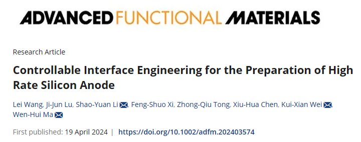 文章:Controllable Interface Engineering for the Preparation of High Rate Silicon Anode