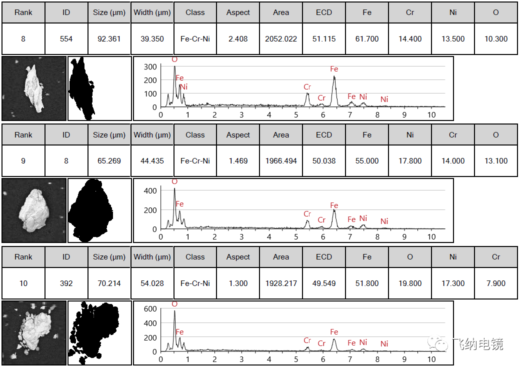 以下是系統(tǒng)自動(dòng)篩選出的雜質(zhì)顆粒的部分結(jié)果,可以直觀地看出雜質(zhì)的形態(tài),成分,種類(lèi)等信息。