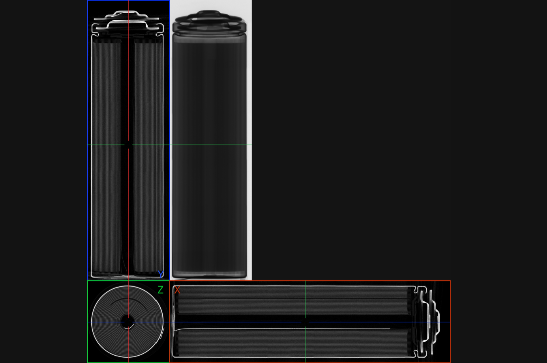 圖2 使用 Neoscan N70 通用型顯微CT 掃描 18650 型電池(長度70毫米),內部結構得以清晰展示。