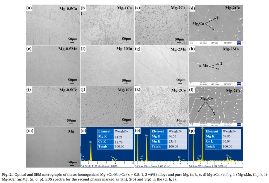 A comparative study on the microstructures and mechanical properties of the Mg-xCa/Mn/Ce alloys and pure Mg Mg-xCa/Mn/Ce