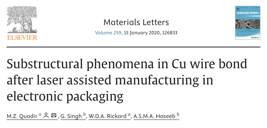 本文研究集成電路芯片銅絲鍵合的晶體與亞結構細節。銅有望取代電子設備制造中的金絲鍵合技術。本文創新工藝結合激光熱與超聲壓,激光加熱利于解決銅高硬度加工難題,產生柱狀晶粒與晶粒尺寸梯度,其加工樣品變形機制不同,具非局域變形特征與明顯動態熱回復現象。