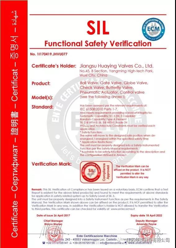 SIL功能安全性認證實例(以江蘇華英閥業SIL3安全性認證為例)