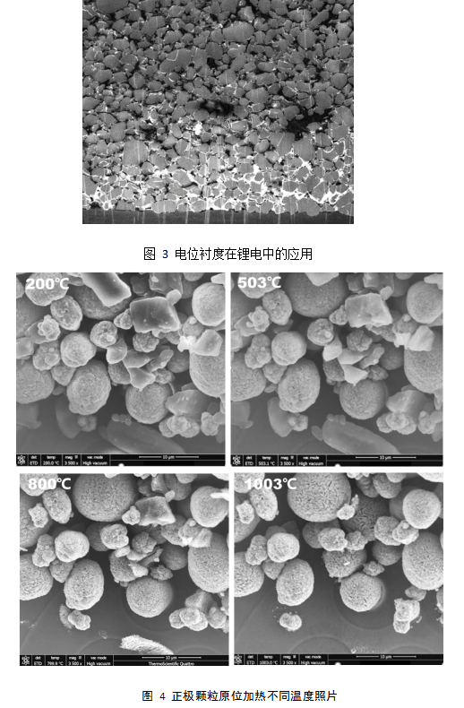 在鋰電行業(yè)中其實(shí)還遍布著很多非常獨(dú)特的需求,例如原位反應(yīng),如圖4在電鏡下模擬前驅(qū)體燒結(jié)的過程,通過實(shí)時(shí)的觀測(cè)和分析,可以更好的控制加工過程中的變量,從而制備出更為性能優(yōu)越的電池正極材料。