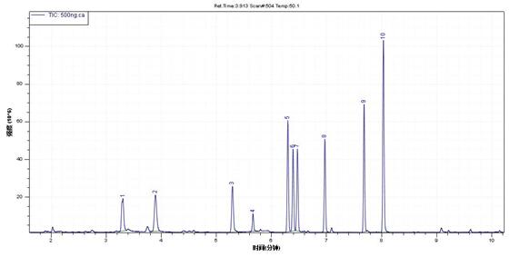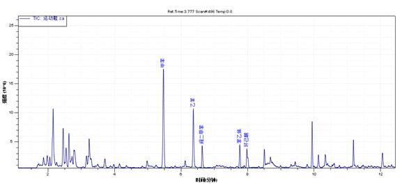 圖3. 某品牌運(yùn)動(dòng)鞋測(cè)試總離子流色譜圖