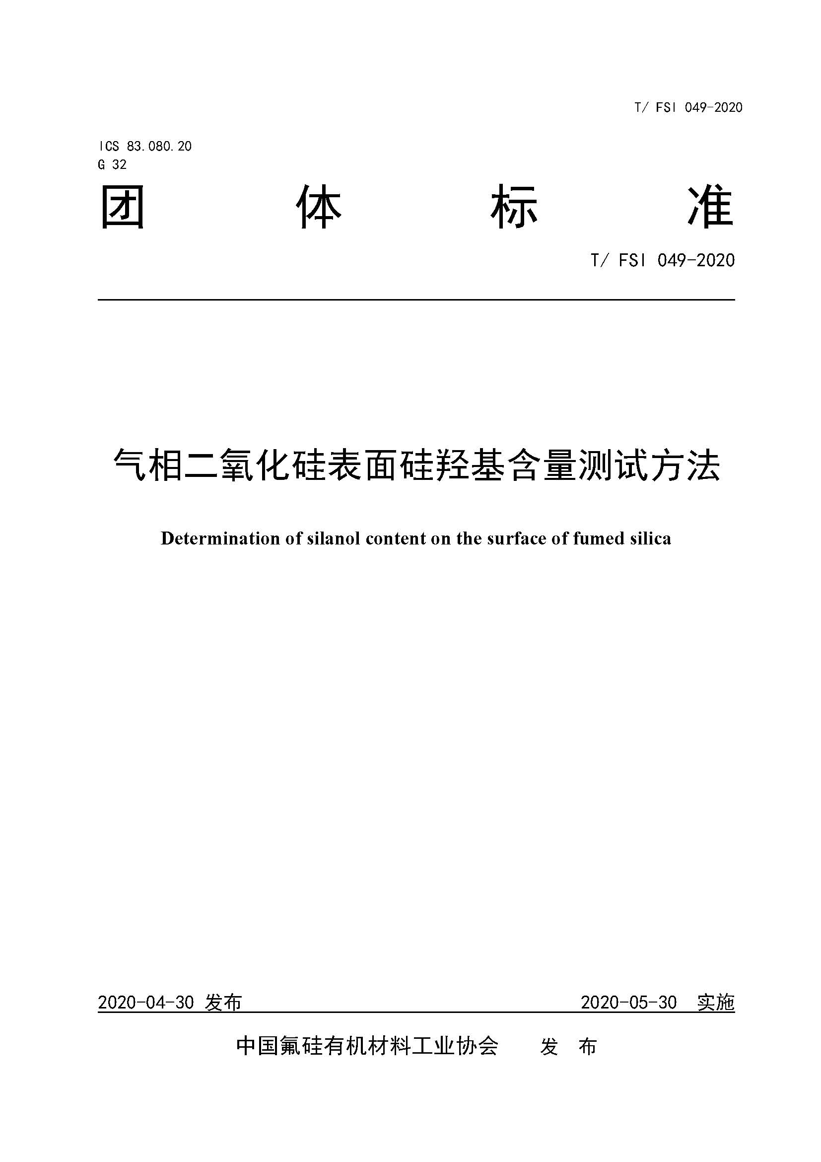 由宜昌匯富硅材料有限公司全資子公司--廣州匯富研究院有限公司主持制定的團體標準《氣相二氧化硅表面硅羥基含量測試方法》(T/FSI 490-2020)于2020年4月30日正式發布,將于2020年5月30日正式實施。