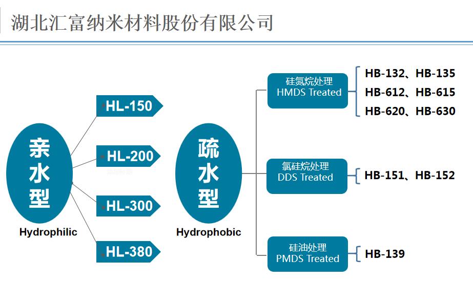 湖北匯富納米材料股份有限公司生產(chǎn)的HL-150200300380系列親水型氣相二氧化硅以及HB—132135612151等系列疏水型氣相二氧化硅為消泡劑客戶(hù)提供了多樣選擇。