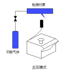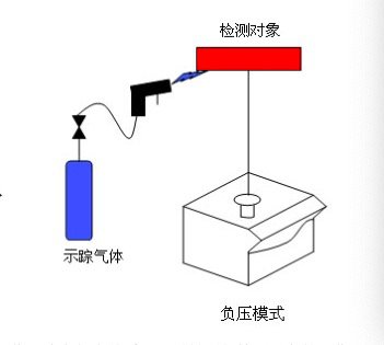 正壓法檢漏與負壓法檢漏相反,吸槍接在檢漏儀的檢測口,而被檢件充入規定壓力的示蹤氣體,漏孔泄漏出來氦氣被吸槍吸入檢漏儀被檢測。大型容器或內部放氣管量很大的容器做負壓檢漏很不經濟,而且檢漏速度慢,一般采取正壓檢漏。