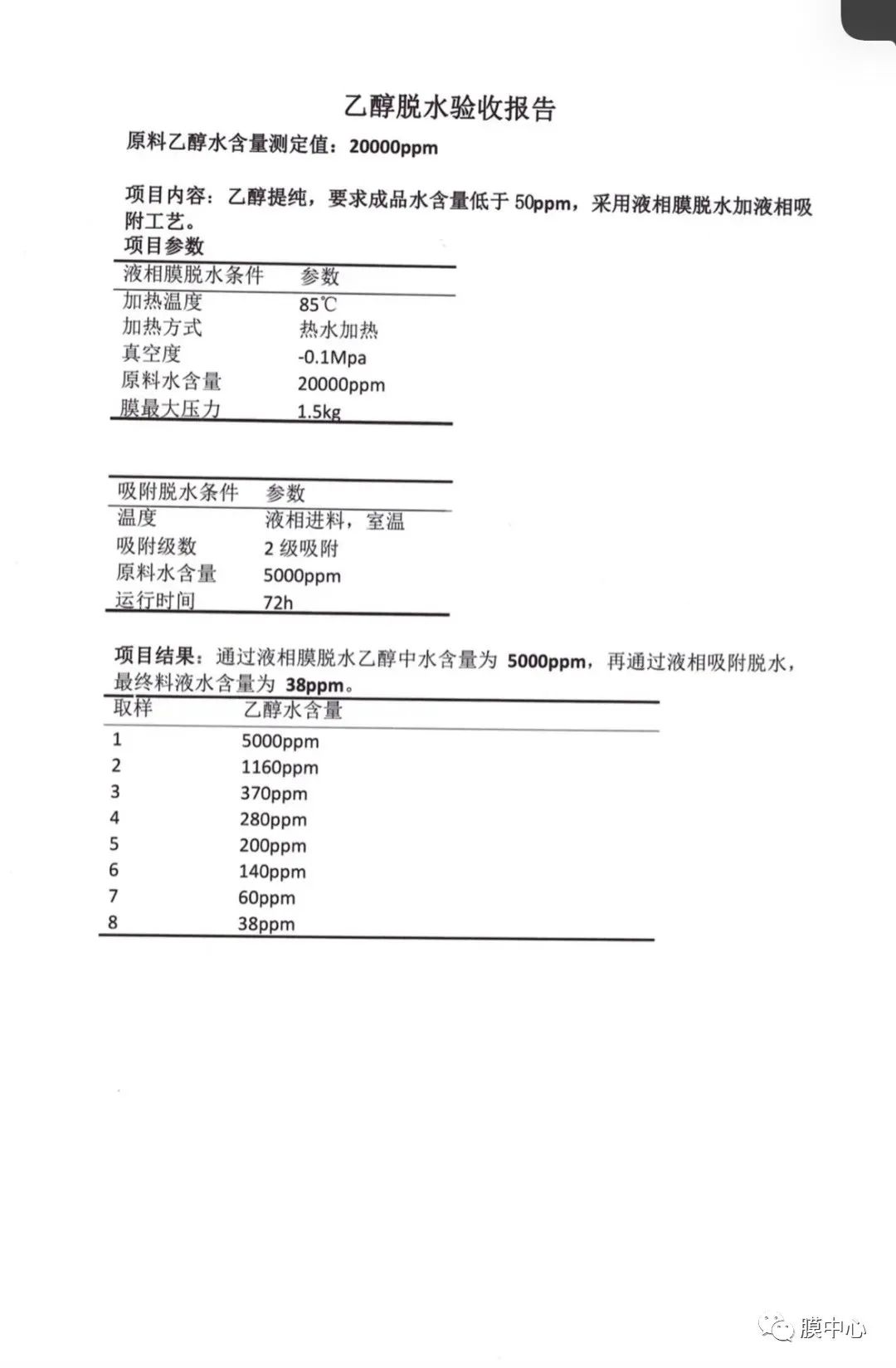醇脫水到38ppm
