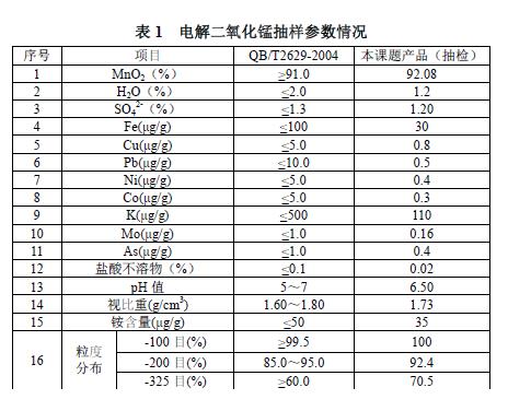 尖晶石型錳酸鋰正極材料用電解二氧化錳系其錳源的重要材料之一。尖晶石型錳酸鋰具有價格便宜、低溫性能好、安全性能高等優(yōu)點,被認為是制作鋰離子動力電池最佳的正極材料之一[1]。
