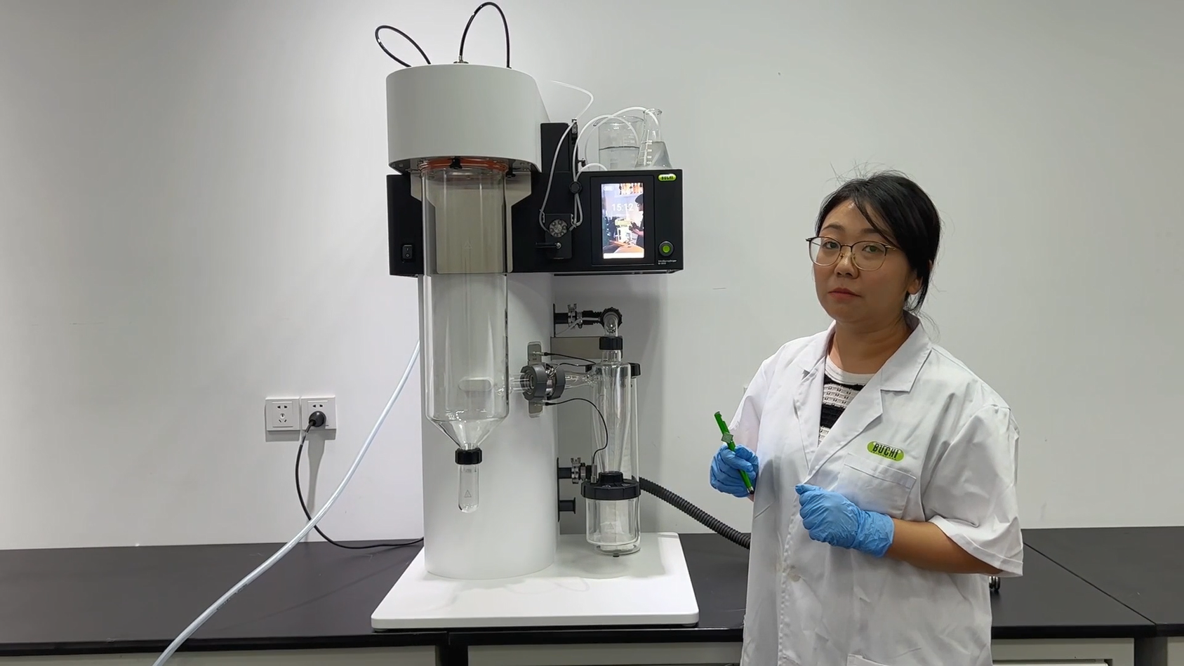 在會上,產品經理楊祎晨現場詳細展示了噴霧干燥儀 S-300 主要特點,操作界面以及操作流程。新款噴霧干燥儀 S-300 的快速簡易的方法設定,一鍵導出報告的功能,精準數值記錄,自動模式等將會給科研人員極大幫助并提高工作效率。