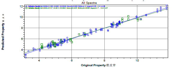 最終三種黃酮成分模型對獨立驗證集樣品預測的均方根誤差分別為 0.284,0.054 和 0.014。與傳統分析方法 HPLC 相比,近紅外分析操作簡便,快速無損,結果準確,且能夠多組分同時測量,這對陳皮藥材的質量控制及在線監測等方面,都有極高的應用價值。