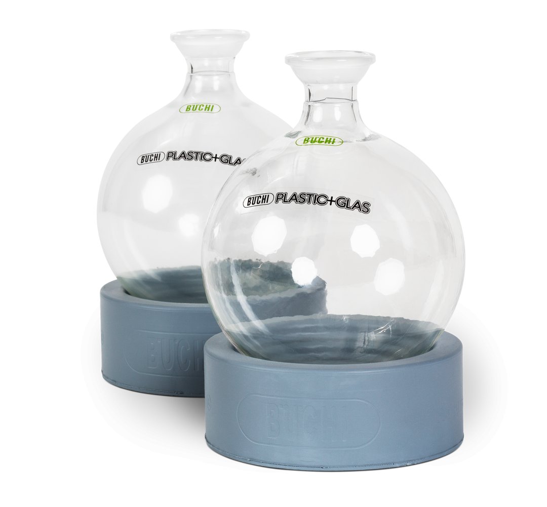 旋轉蒸發儀的瓶子和冷凝器通常由硼硅酸鹽玻璃制成。但如果你擔心操作安全性,或瓶子破損導致丟失寶貴的樣品,那帶有 “PLASTIC+GLAS” 塑料涂層的瓶子和冷凝器是非常好的選擇。