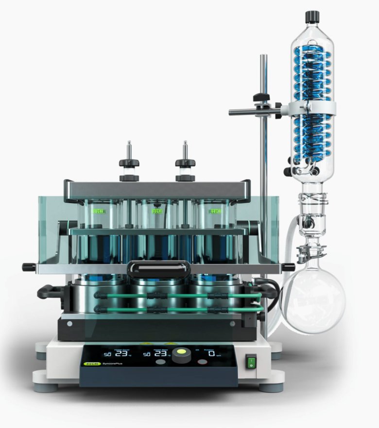 AutoDest 和 AutoDry 的組合可實現將溶劑蒸干的全自動化過程。因此不需要設置方法,只需要設置 SyncorePlus 底座和加熱蓋的旋轉、溫度和干燥時間即可。利用平行蒸發儀對檢測過程中的氯苯溶劑蒸餾進行批量化處理,可大大減少檢測中所花費的人力及時間。