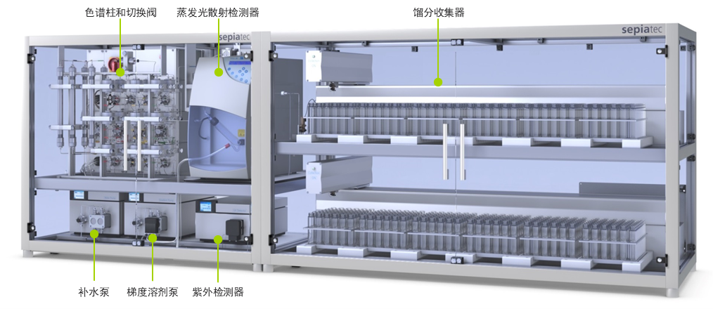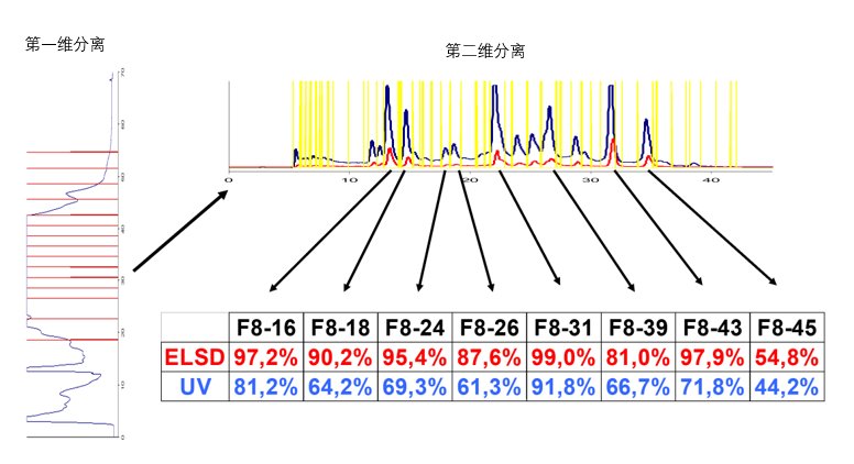 Sepbox 2D-2000 可以在一天內純化收集多達 576 個餾分,其中 20%-30% 的餾分純度可以達到 90% 至 99% (ELSD下)。