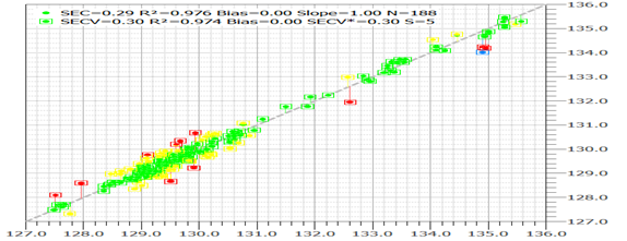 從結(jié)果來看,在線近紅外作為一種快速的測量方法,其定標(biāo)模型顯示較高的精確度,穩(wěn)定性,并且可以代替化學(xué)方法測定油脂中多個參數(shù)。可實(shí)時的為生產(chǎn)提供數(shù)據(jù),優(yōu)化工藝參數(shù),助力油脂精煉。