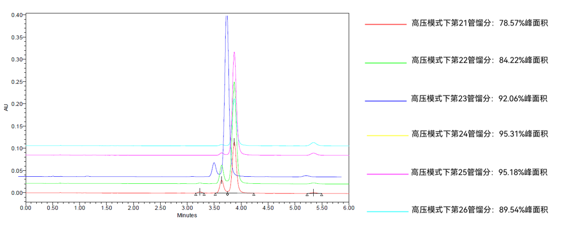 ▲ 高壓模式下 21-26 管餾分 HPLC 檢測圖