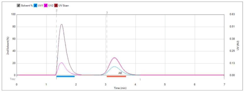 在 HPLC 中,最長的時間是運行過程。建議平衡 3-5 個柱體積。在這里的應用實例中,平衡是在 4 CV 下完成的。當使用 SFC 時,平衡只需要 2min。