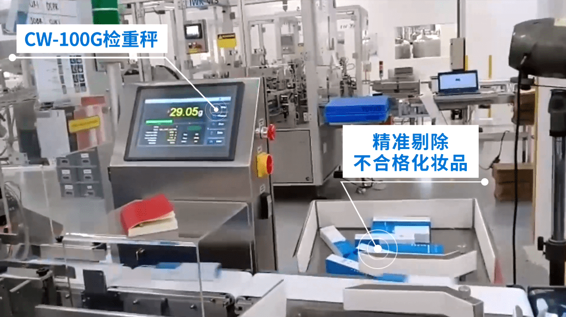 杰曼檢重秤在線精準剔除不合格化妝品