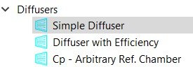 軟件內(nèi)置3種擴壓器元件類型,最簡單的一種需要輸入Cp-靜壓恢復系數(shù),以及擴壓器上下游的通道面積。用戶也可以輸入擴壓效率Eff。對于一進多出的流道,在每個支路上可以設置Target Flow來控制流量。