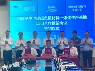 - ·16億元!鈉離子電池硬碳負極材料一體化生產基地項目簽約廣東韶關